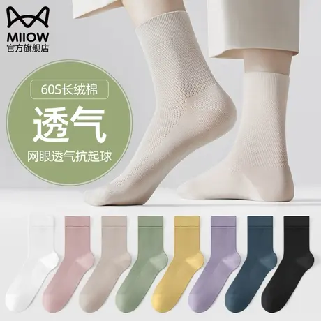 MiiOW/猫人纯棉男袜夏季薄款透气网眼运动中筒袜短款吸湿排汗
