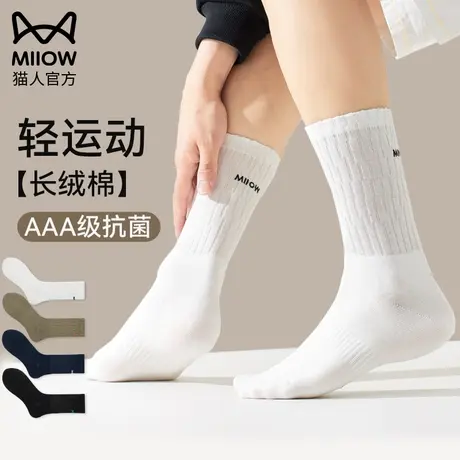 猫人白色袜子男生纯棉秋冬吸汗防臭抑菌透气中筒男士新款运动长袜