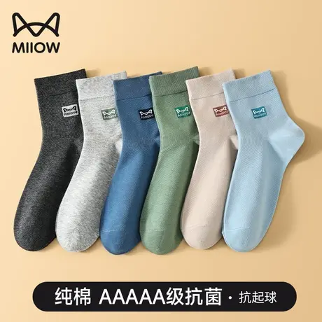 MiiOW/猫人袜子男纯棉中筒冬季运动防臭吸汗棉袜黑色商务男士长袜